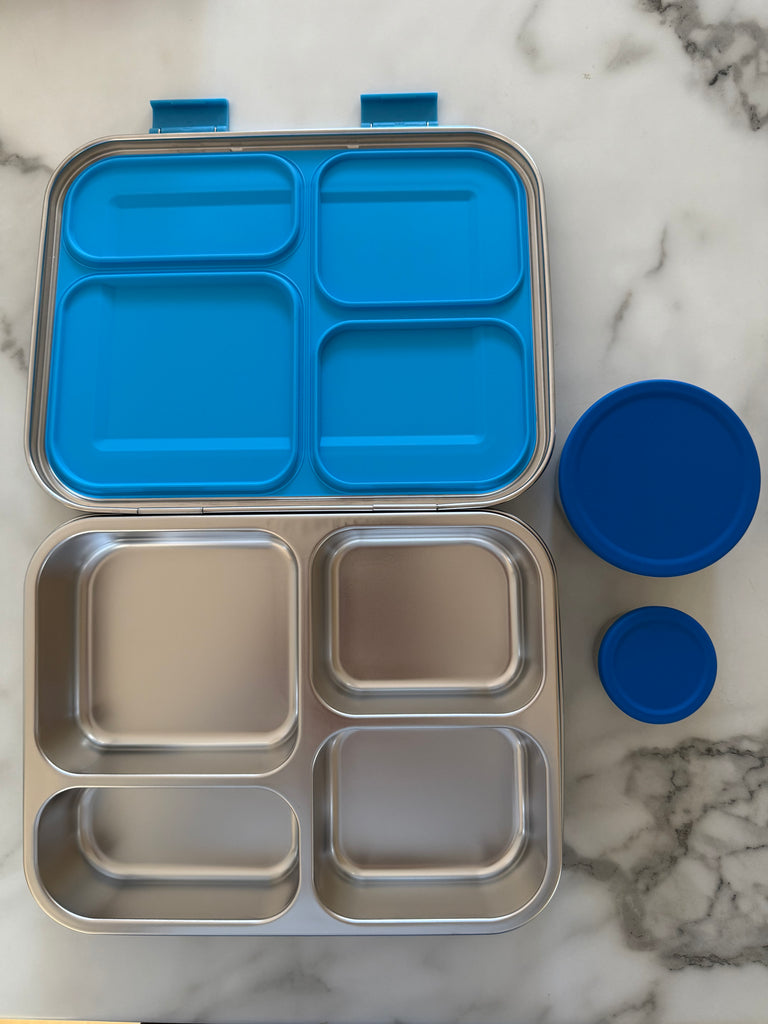 - Stainless Steel Bento - 4 Compartment Lunchbox + 2 Snack Pots - Blue