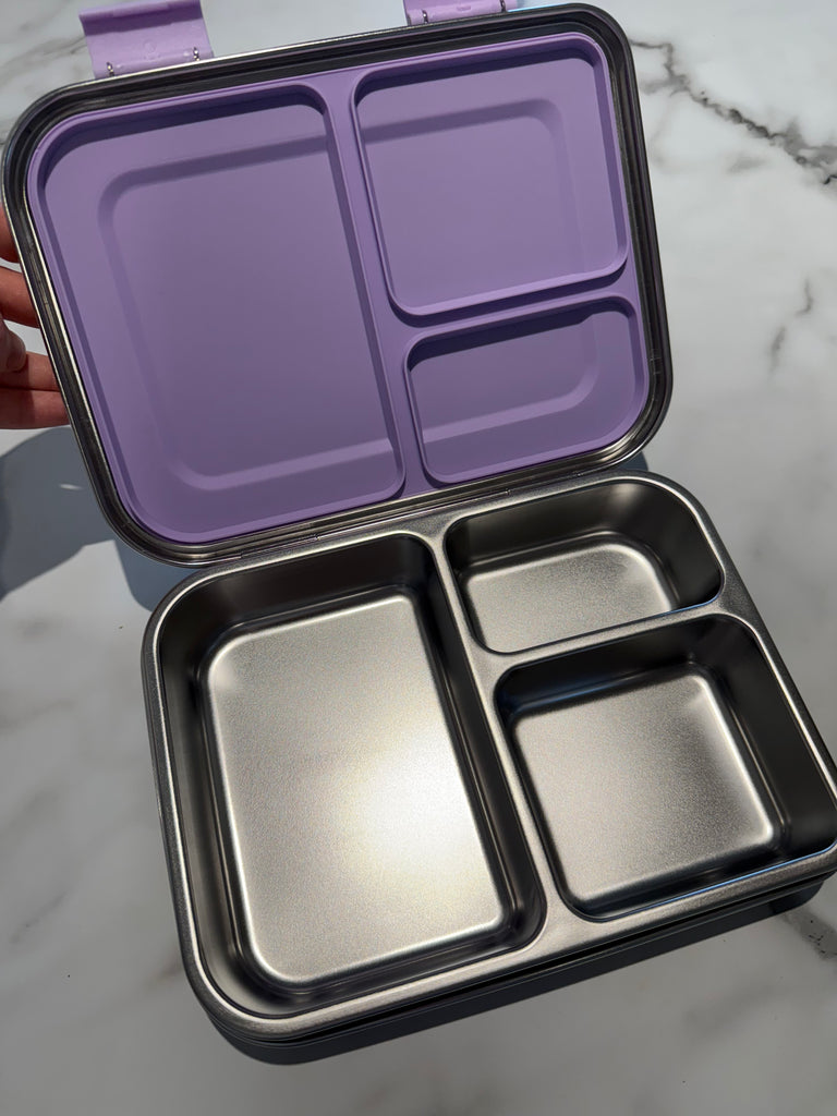 Stainless Steel Bento - 3 Compartment Lunchbox + 2 Snack boxes - Purple