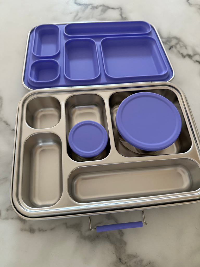 Stainless Steel Bento - 5 Compartment Lunchbox + 2 Snack Pots - Purple
